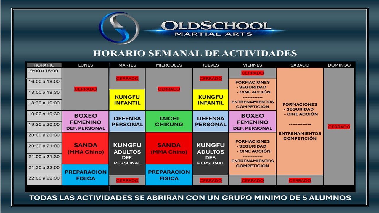 Los Viernes y Sábados están destinados a Cursos de Formación de distintas actividades, Formaciones para Seguridad, Formaciones para Actores o Entrenamientos de Competición, en horarios variados según necesidad de la propia Formación.